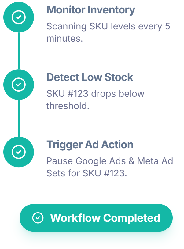 Most tools just report on data. Zenbundle uses your data to take action —pausing ads, launching creatives, and sending emails automatically.
