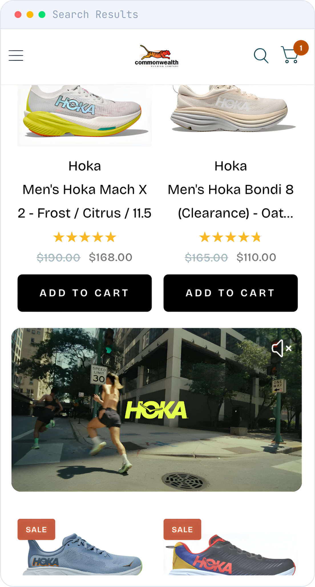 Sponsored banners on collection pages, search results, and product pages — paid for by the brand.